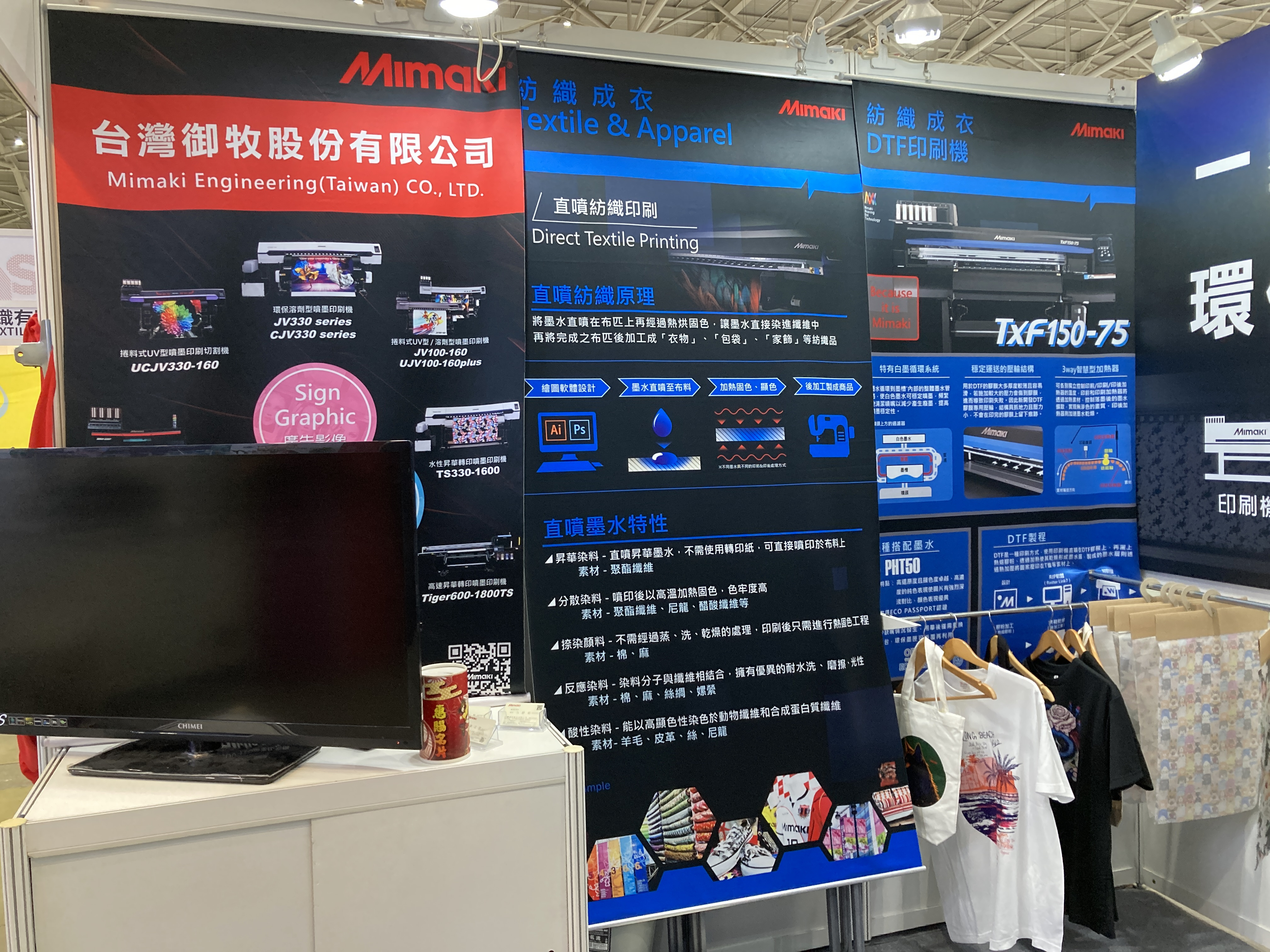 於會場上展示全新技術TRAPIS、熱昇華轉印、DTF抖粉的精美印刷樣品,供來客參考實際印刷效果。不論是布類直噴印刷、熱昇華轉印、DTF抖粉印刷、多種布類印刷都能找到相符的技術及機種,另還有代工部門提供代印服務,讓來客一次飽覽紡織類印刷的各式製程及效果,找到最適合的解決方案。