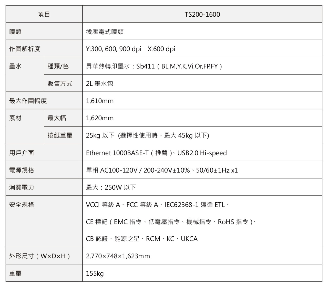 只要1台TS200就能廣泛運用在服飾、商品、布面廣告招牌,對於入門使用者來說是全新的標準機型。