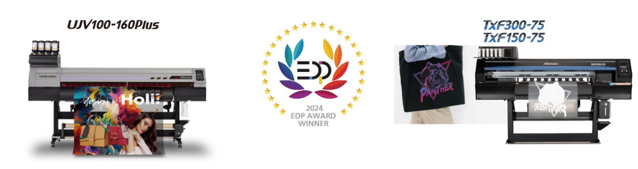 Mimaki股份有限公司(本社/長野縣東御市、代表董事兼任總經理/池田 和明)特此發表,本公司的UV硬化型噴墨印刷機UJV100-160Plus和DTF(Direct-to-Film)印刷機的TxF Series(TxF150-75和TxF300-75)的2款產品,於2024年榮獲歐洲數位印刷協會(European Digital Press Association 簡稱EDP)的年度創新印刷印花機大獎。