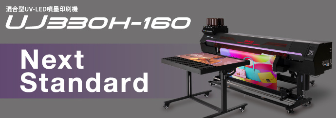 「UJ330H-160」不僅是捲材的輸出,硬性(板材)媒材的直接印刷都能應對的混合型UV噴墨印刷機。